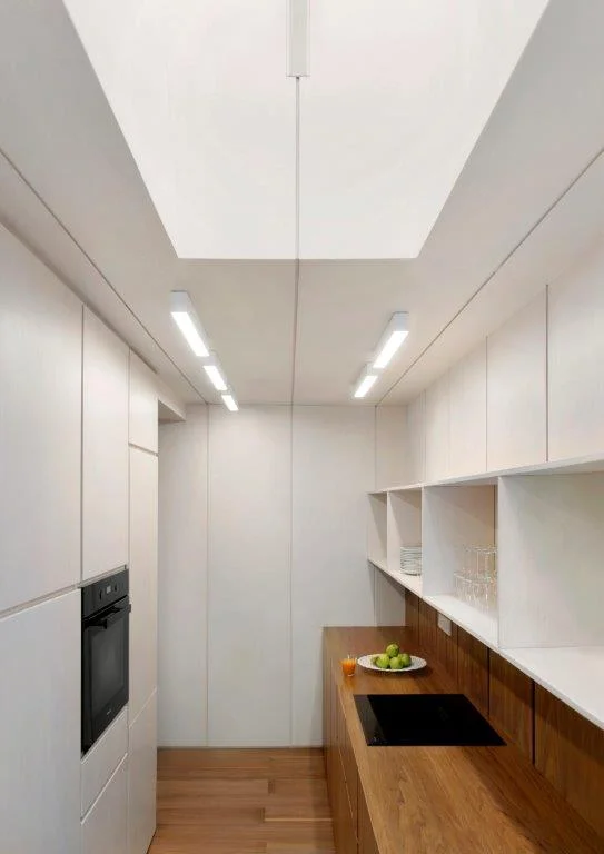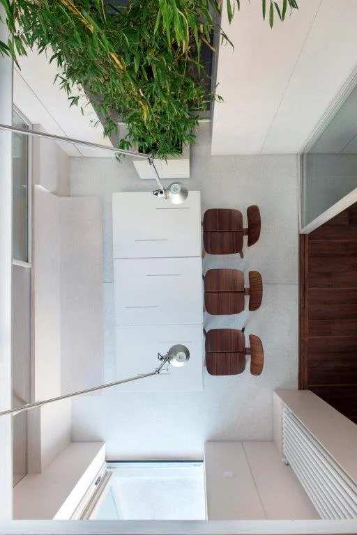 Σε κεντρική κατοικία του ’70 στο Βελιγράδι, μια προκλητική ανακατασκευή του A 24 εισήγαγε μια νέα μεταλλική κατασκευή, επιτρέποντας έτσι επιπλέον 13 m2 κατοικήσιμου χώρου. Έντεκα φωτεινά ”πηγάδια” δημιουργήθηκαν για να επιτρέπουν φυσικό φως και αερισμό για ολόκληρο τον χώρο, μαζί με τη δημιουργία δύο μεταβατικών σημείων – εσωτερικούς κήπους.