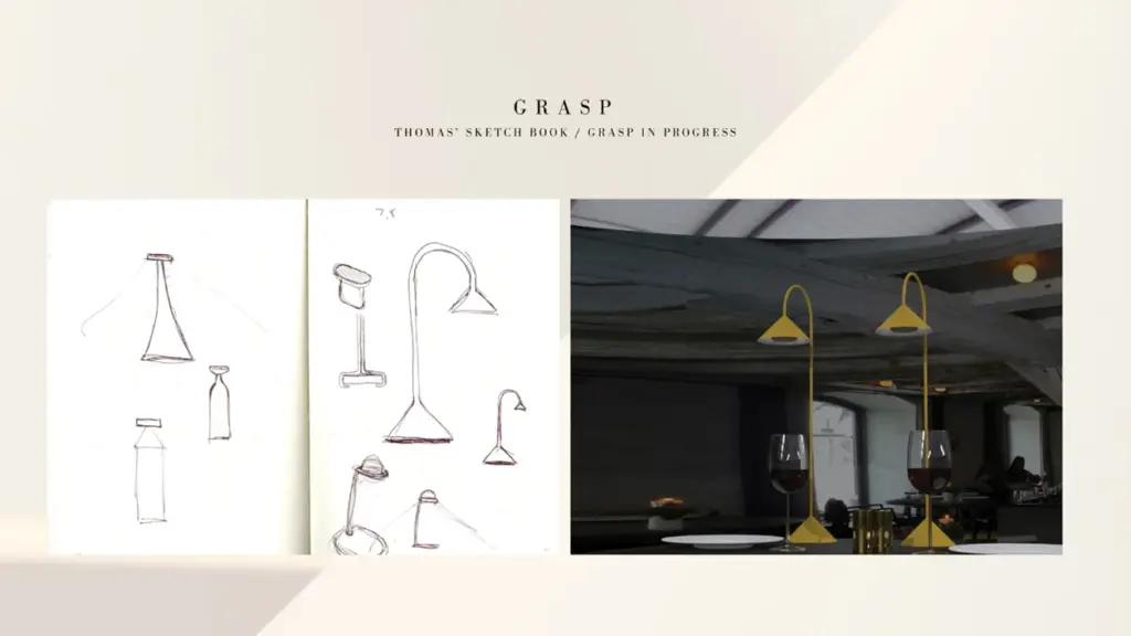 Σκίτσα του σχεδιαστή και εξέλιξη του φωτιστικού Grasp