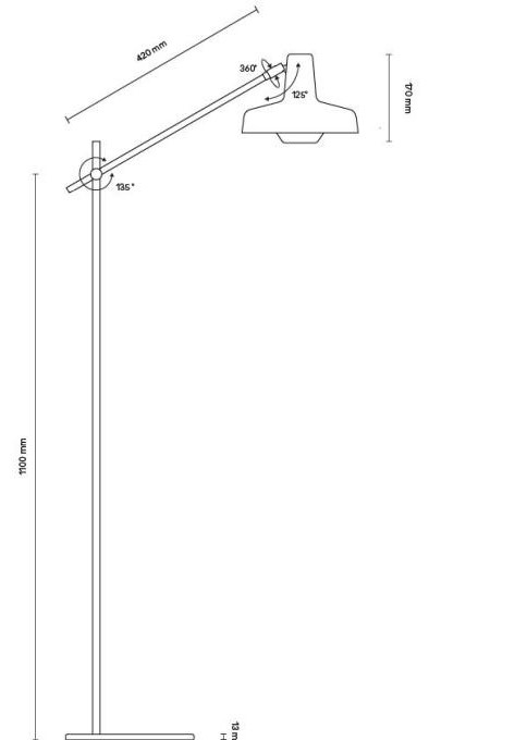 Διαστάσεις: διάμετρος βάσης 25cm – μήκος σταθερού στελέχους Μ 110cm – μήκος βραχίονα διαχύτη Μ 42cm – διάμετρος διαχύτη  22.8cm