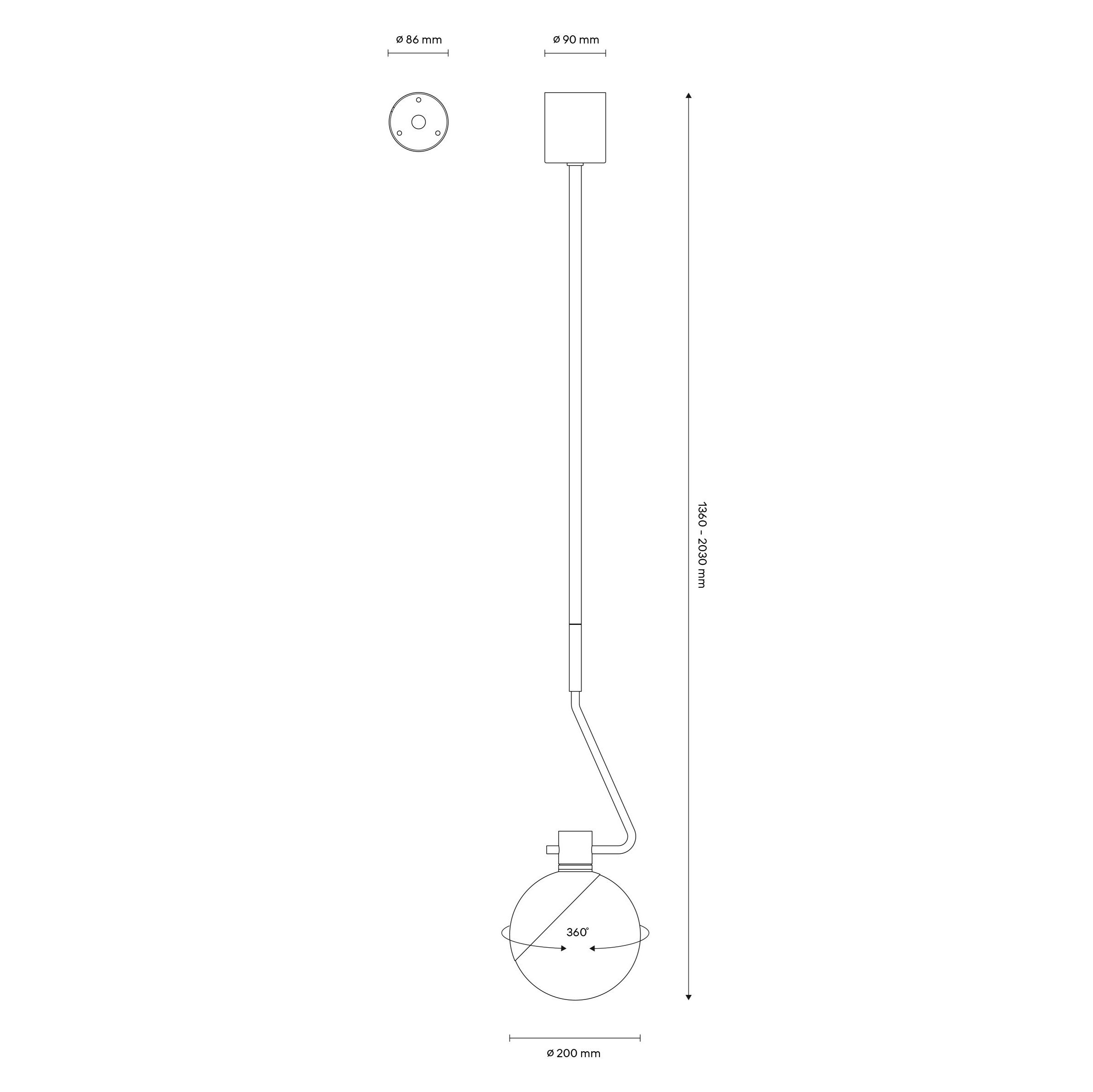Διαστάσεις: Βάση Φ 9,1cm Κρέμαση Μ 136-200cm Διάμετρος γυάλινης σφαίρας Φ 19.7cm