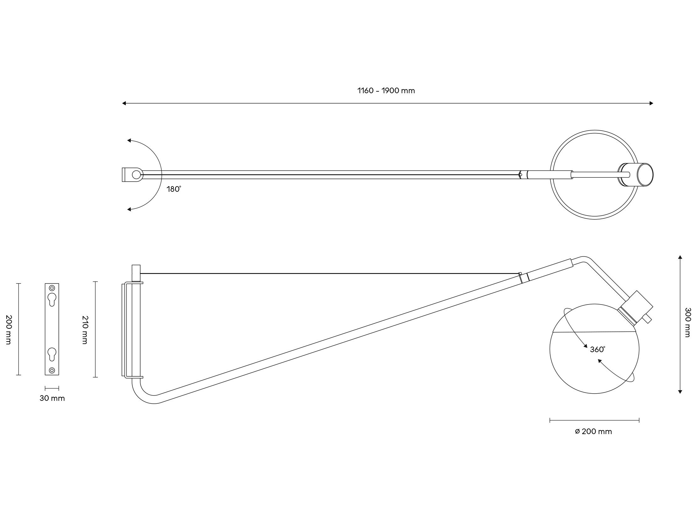 Διαστάσεις: Βάση 4.3 x 3 x Y 21cm Βραχίονας Μ 118-190cm Διάμετρος γυάλινης σφαίρας Φ 19.7cm